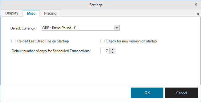 There isn't a lot of configuration required for Maxim Money. The most important thing you might want to set before setting anything up, is the default currency. To set this, go to Settings (click on the